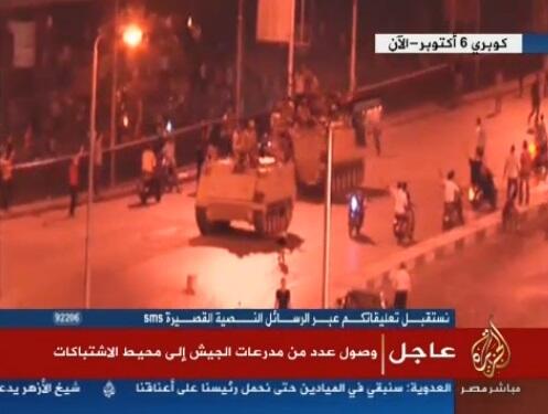 عاجل : الجيش يصل الى ماسبيرو ، حيث وصل عدد من المدرعات الى مكان الاشتباكات أعلى كوبري 6 أكتوبر .
